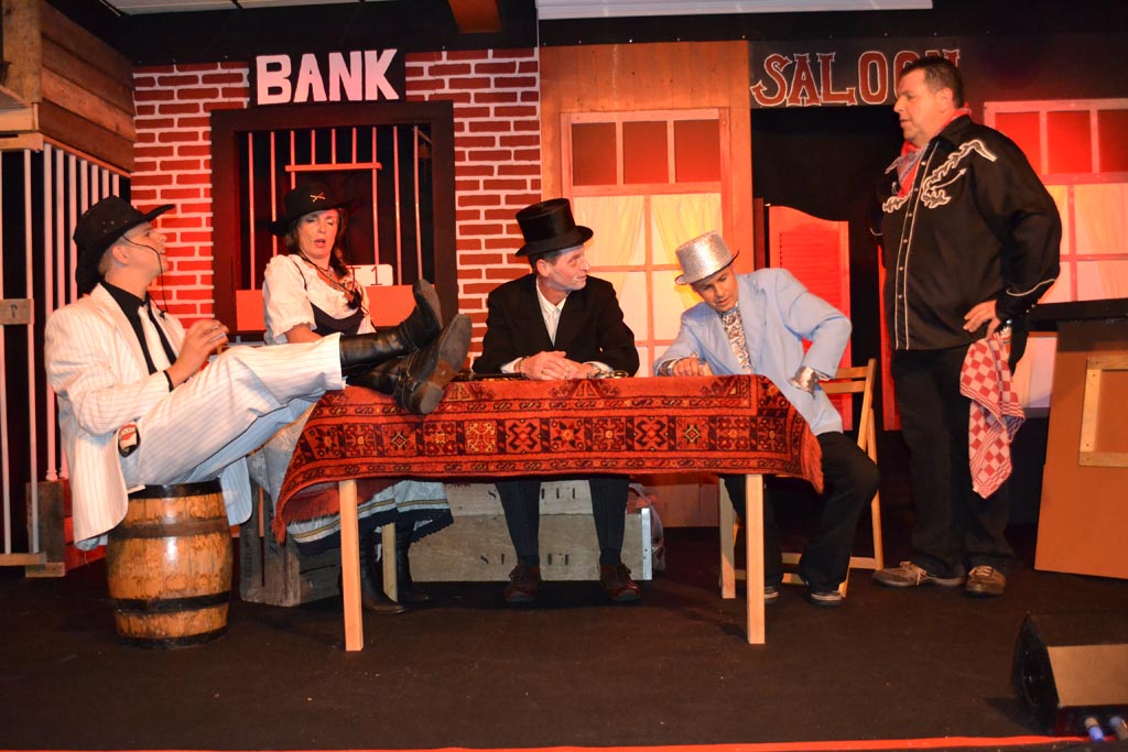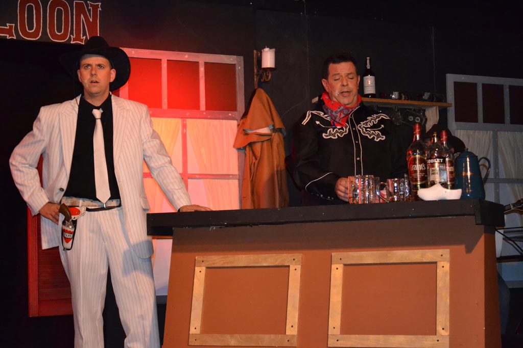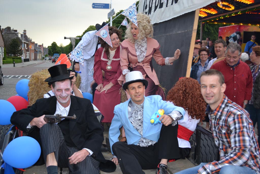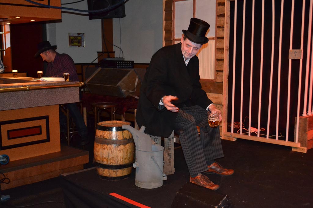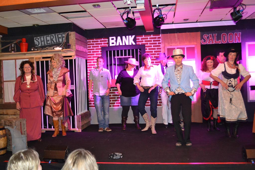 Op zaterdag 16, maandag 18, en dinsdag 19 juni, tijdens de kermis van Nieuwkuijk zal deze Nieuwkuijkse Cabaret Vereniging voor de 17e keer haar jaarlijkse voorstelling opvoeren in zaal D’n Bork. Het zal er dit jaar om gaan spannen, want héél Nieuwkuijk wordt het decor van wilde schietpartijen en saloongevechten, zoals deze plaatsvonden in ‘The good old Wild West’. Daar hebben we het thema: het Wilde Westen, maar dan in Nieuwkuijks dialect. Dan hebben we het over ‘Newcreek’. Elshout wordt ‘Elswood’ en het Drunense Duin is dan ‘Drunen Dessert’. Louis van Dijk, wel of niet de leiding, da’s onduidelijk, ontvangt ons hartelijk in de overvolle repetitieruimte. Ruim twintig man en vrouw zijn druk in de weer. Met muziek maken, met zingen, met decorstukken maken, met lijsten op laptops controleren, met koffi e schenken of gewoon met door alles heen praten. In de repetitieruimte is een wildwest gevangenis nagebouwd, een bank en een saloon. Aan een tafeltje in die saloon zitten vier ‘kojbojs’ te pokeren en moppen te tappen, in plat Brabants. Maarten, houdt alles bij op de laptop: ‘We hebben geen vaste regisseur.