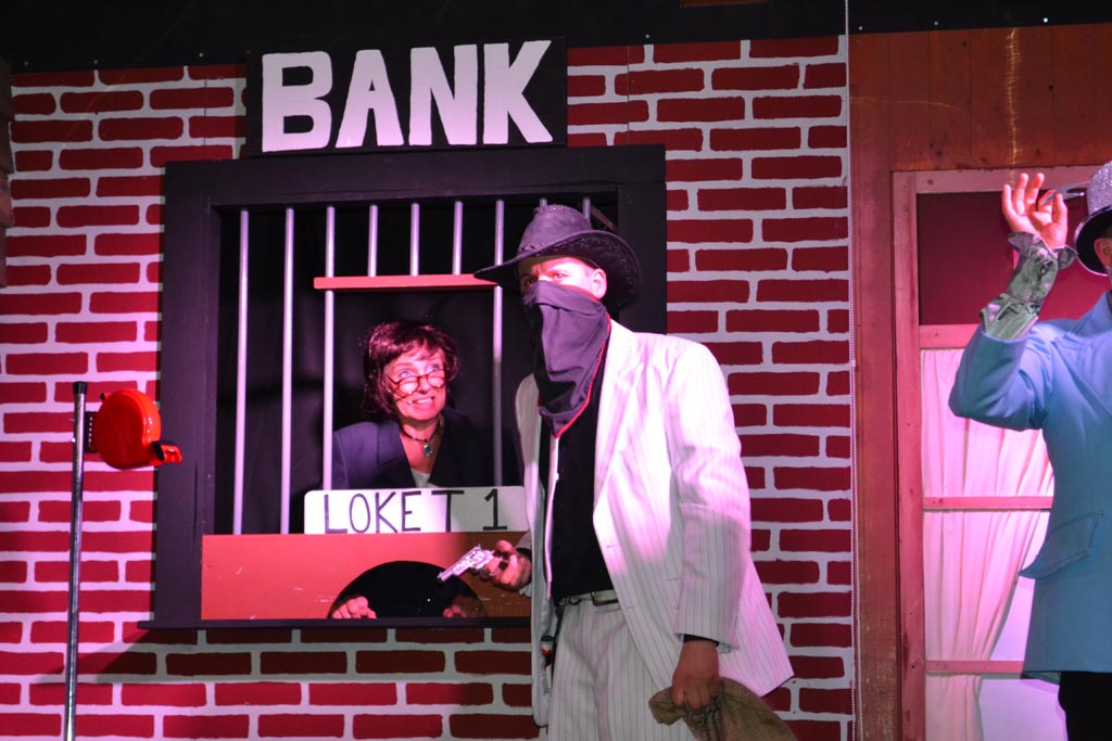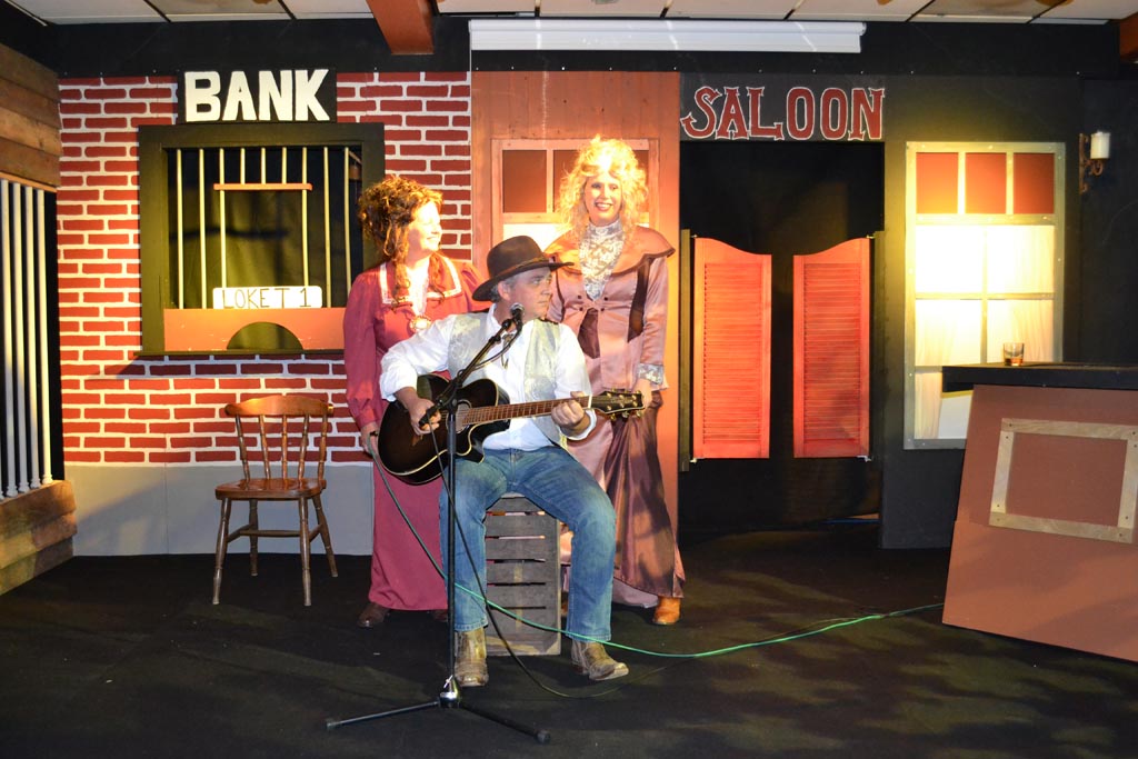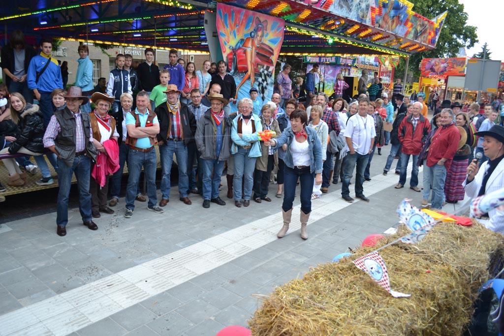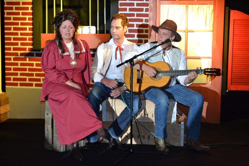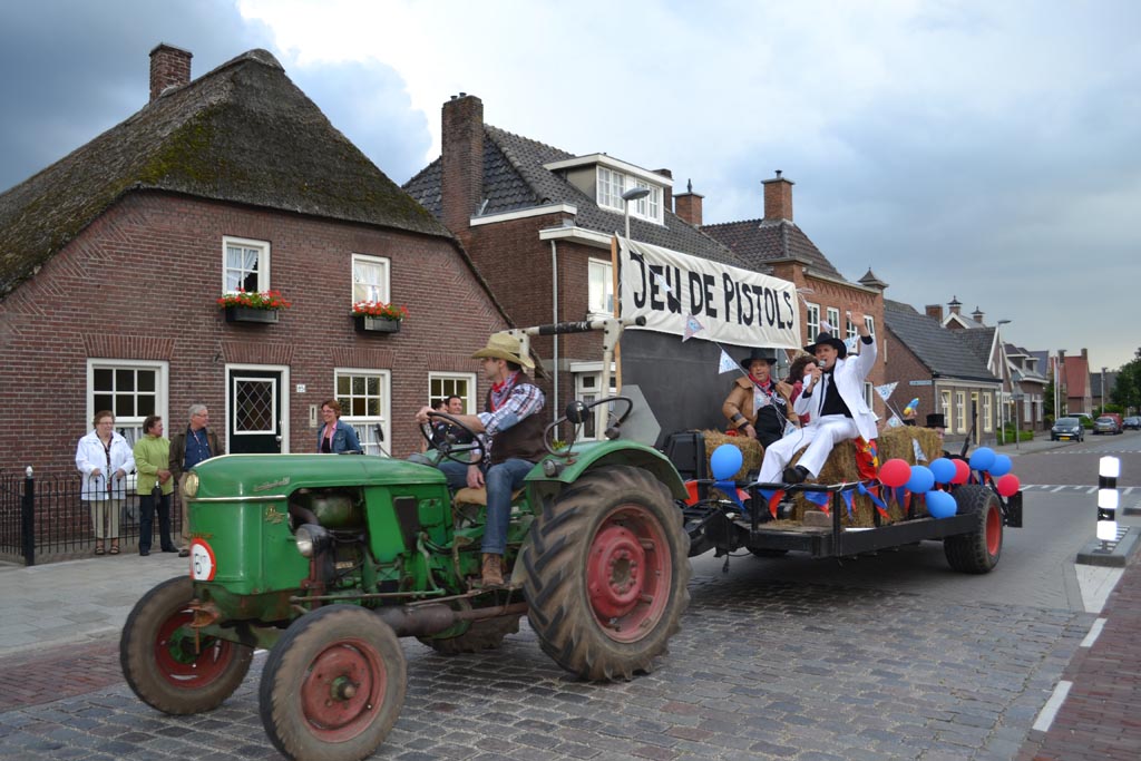 Op zaterdag 16, maandag 18, en dinsdag 19 juni, tijdens de kermis van Nieuwkuijk zal deze Nieuwkuijkse Cabaret Vereniging voor de 17e keer haar jaarlijkse voorstelling opvoeren in zaal D’n Bork. Het zal er dit jaar om gaan spannen, want héél Nieuwkuijk wordt het decor van wilde schietpartijen en saloongevechten, zoals deze plaatsvonden in ‘The good old Wild West’. Daar hebben we het thema: het Wilde Westen, maar dan in Nieuwkuijks dialect. Dan hebben we het over ‘Newcreek’. Elshout wordt ‘Elswood’ en het Drunense Duin is dan ‘Drunen Dessert’. Louis van Dijk, wel of niet de leiding, da’s onduidelijk, ontvangt ons hartelijk in de overvolle repetitieruimte. Ruim twintig man en vrouw zijn druk in de weer. Met muziek maken, met zingen, met decorstukken maken, met lijsten op laptops controleren, met koffi e schenken of gewoon met door alles heen praten. In de repetitieruimte is een wildwest gevangenis nagebouwd, een bank en een saloon. Aan een tafeltje in die saloon zitten vier ‘kojbojs’ te pokeren en moppen te tappen, in plat Brabants. Maarten, houdt alles bij op de laptop: ‘We hebben geen vaste regisseur.